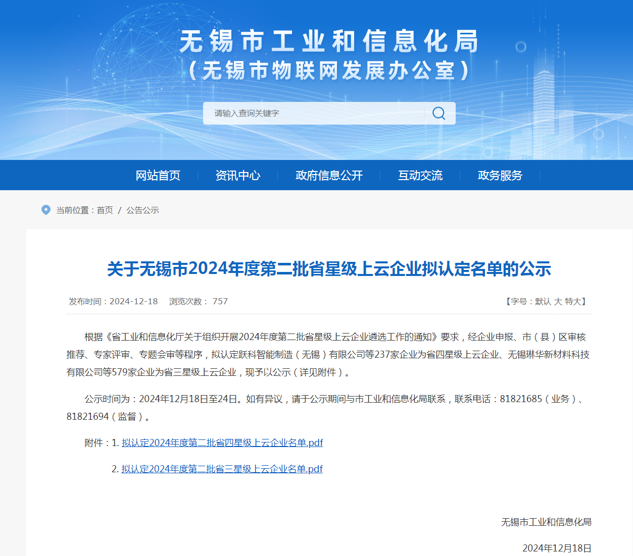 昨日無錫市工業(yè)和信息化局網(wǎng)站公示了